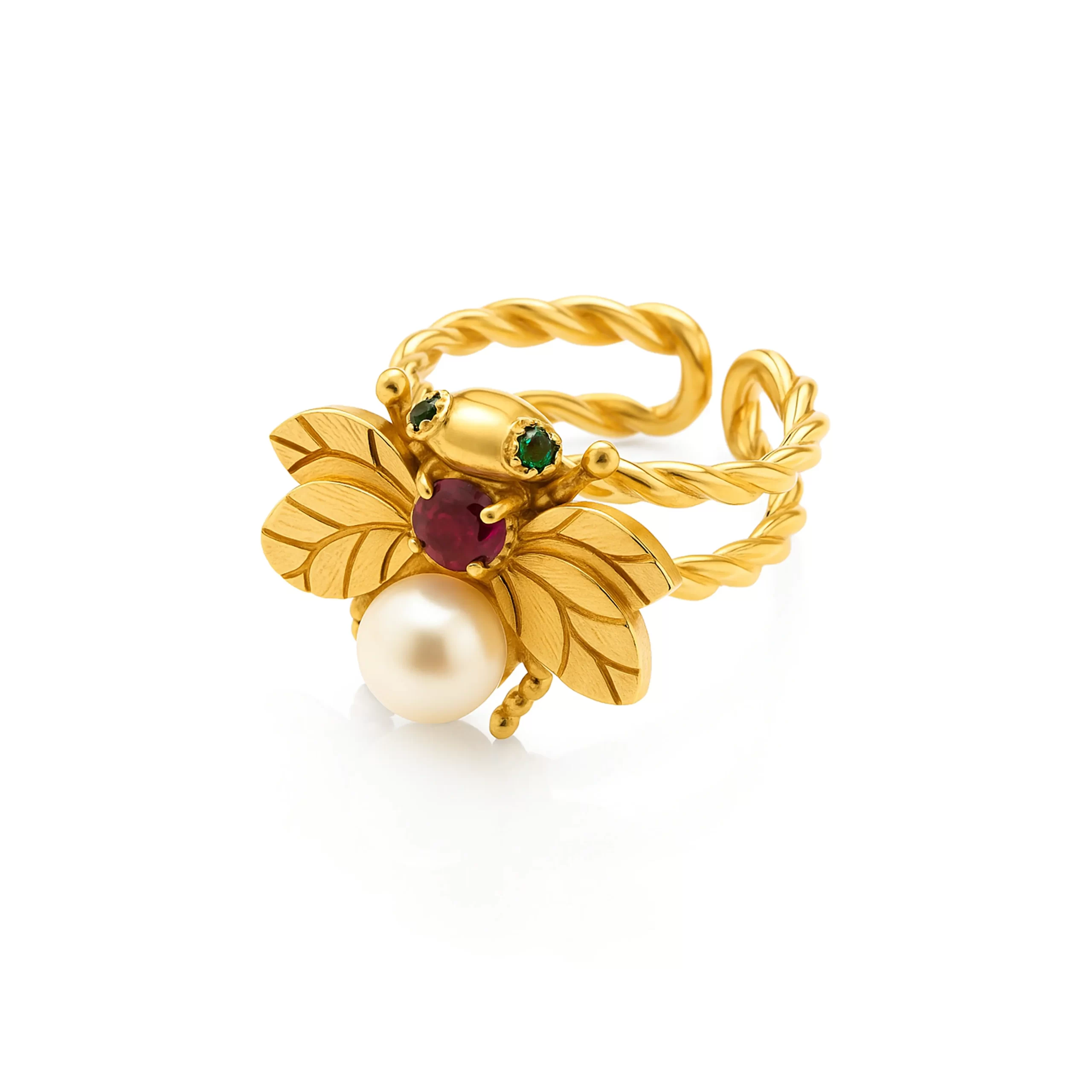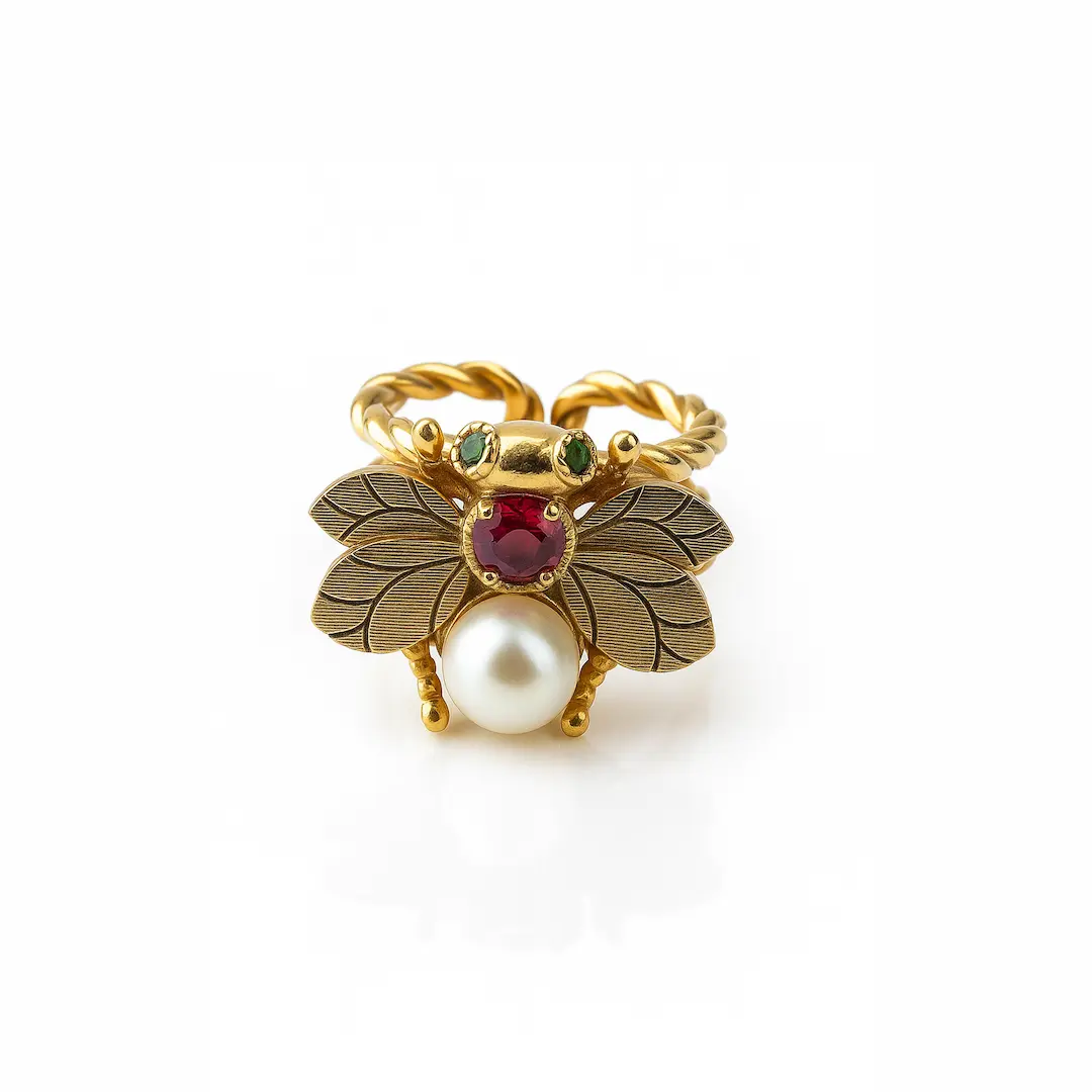 Anillo en plata ley 925 ajustable de abeja con enchape en oro de 24 quilates.