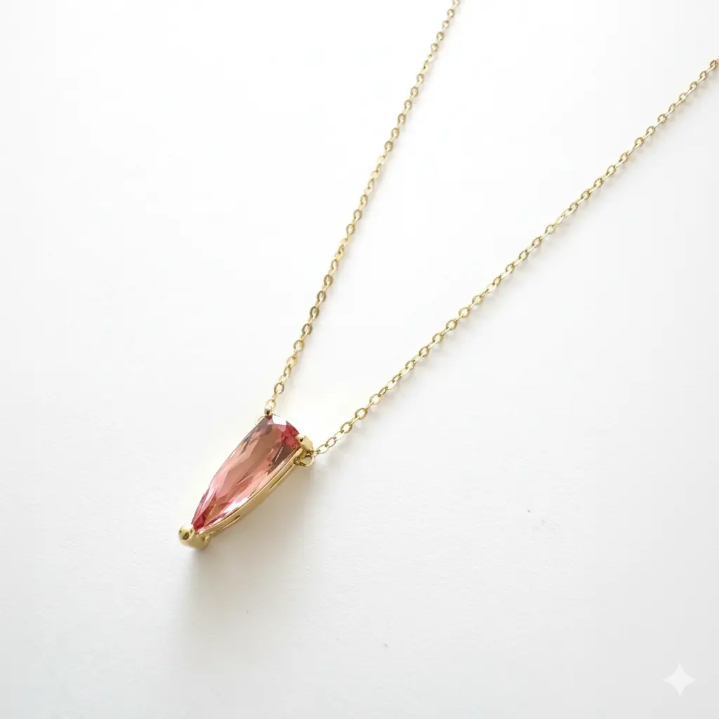 La turmalina rosa, también conocida como rubelita en sus tonos más intensos, pertenece al grupo de los ciclosilicatos y debe su color a la presencia de manganeso y litio en su composición química. Cada turmalina bicolor es absolutamente única en el mundo, con patrones de color que nunca se repiten exactamente. Las variaciones naturales en su tonalidad rosa melón son la firma de autenticidad de la naturaleza, convirtiendo tu Cadena de Oro 18K en una pieza verdaderamente exclusiva que nadie más poseerá igual.