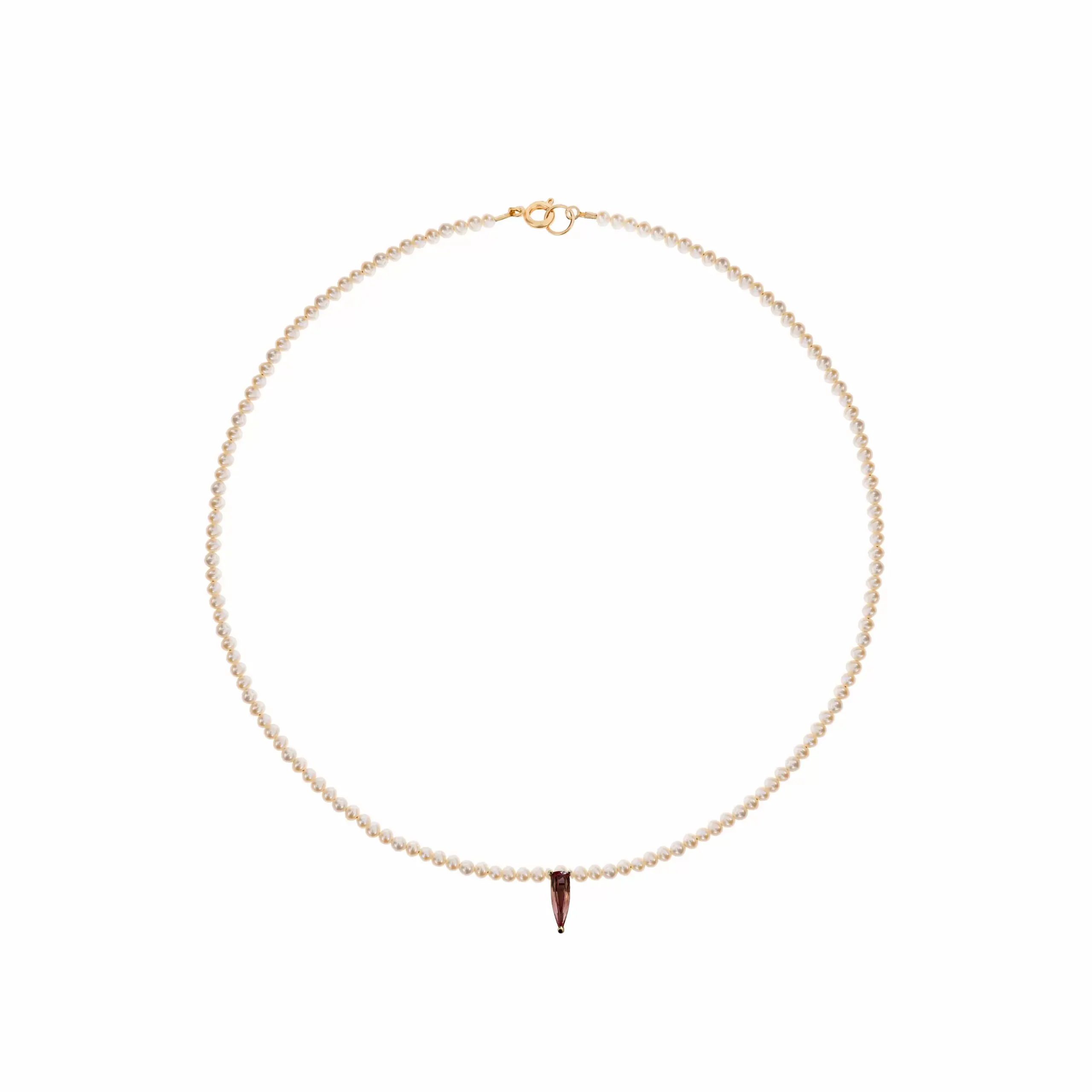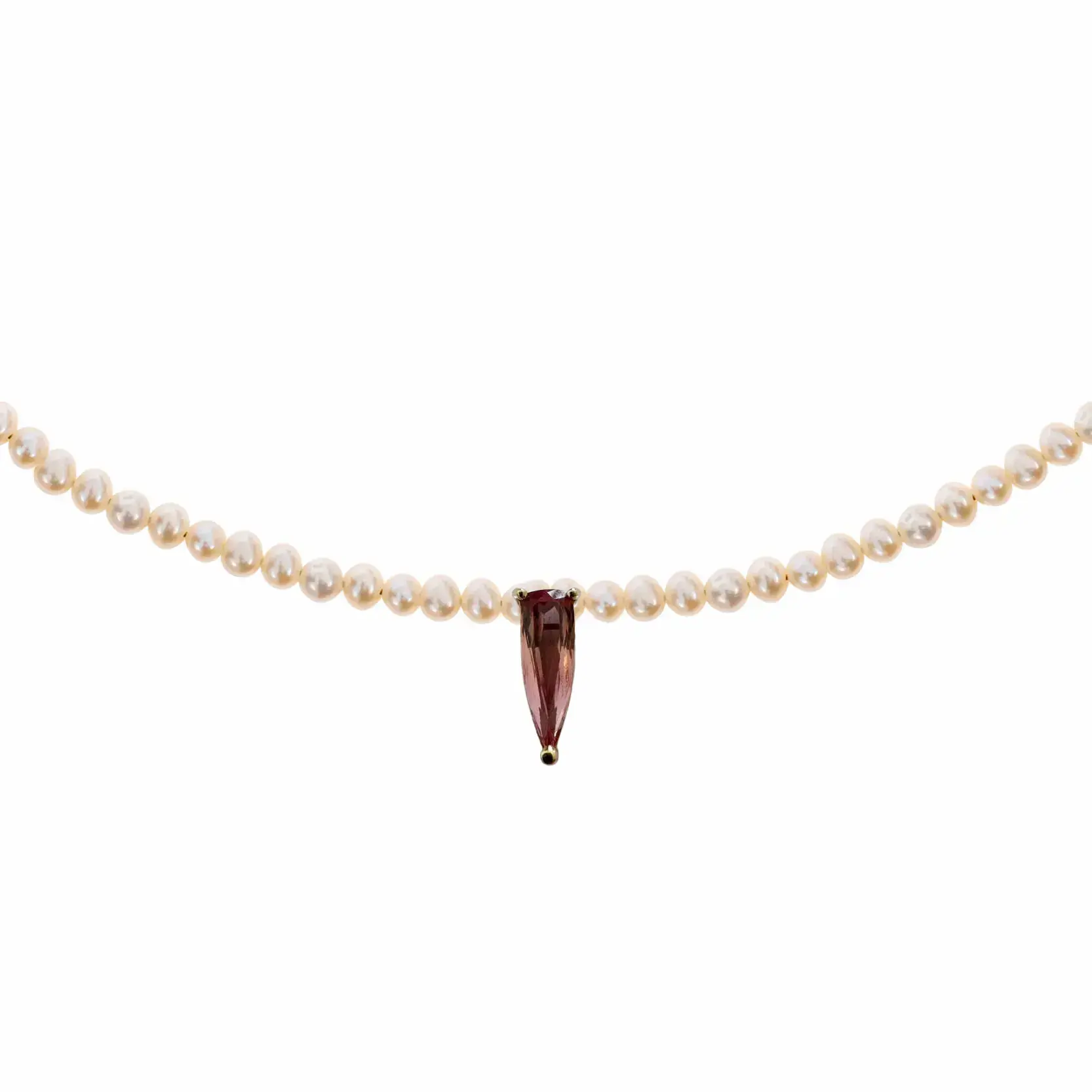 Collar de perlas naturales con una piedra de Turmalina bicolor.