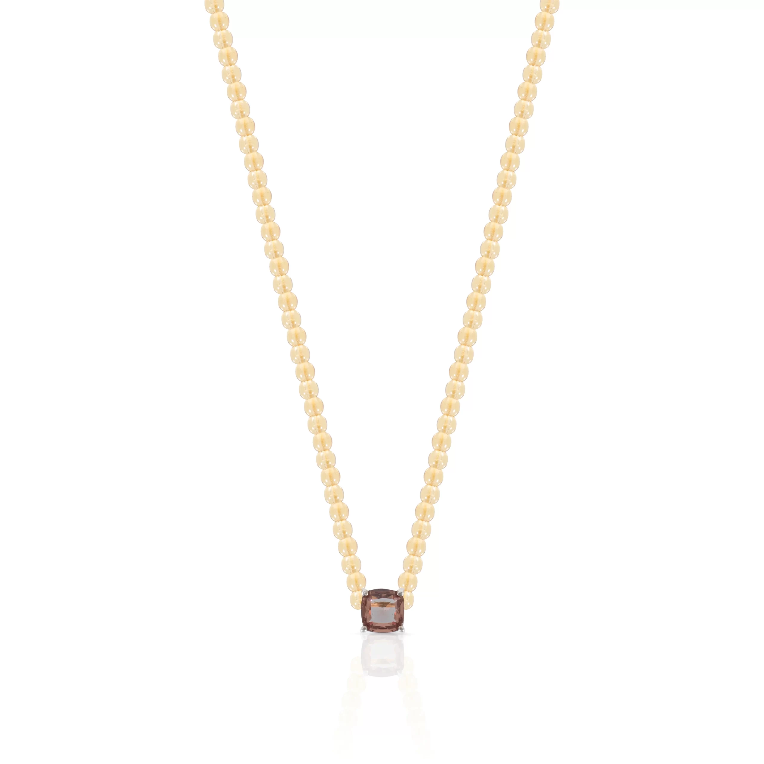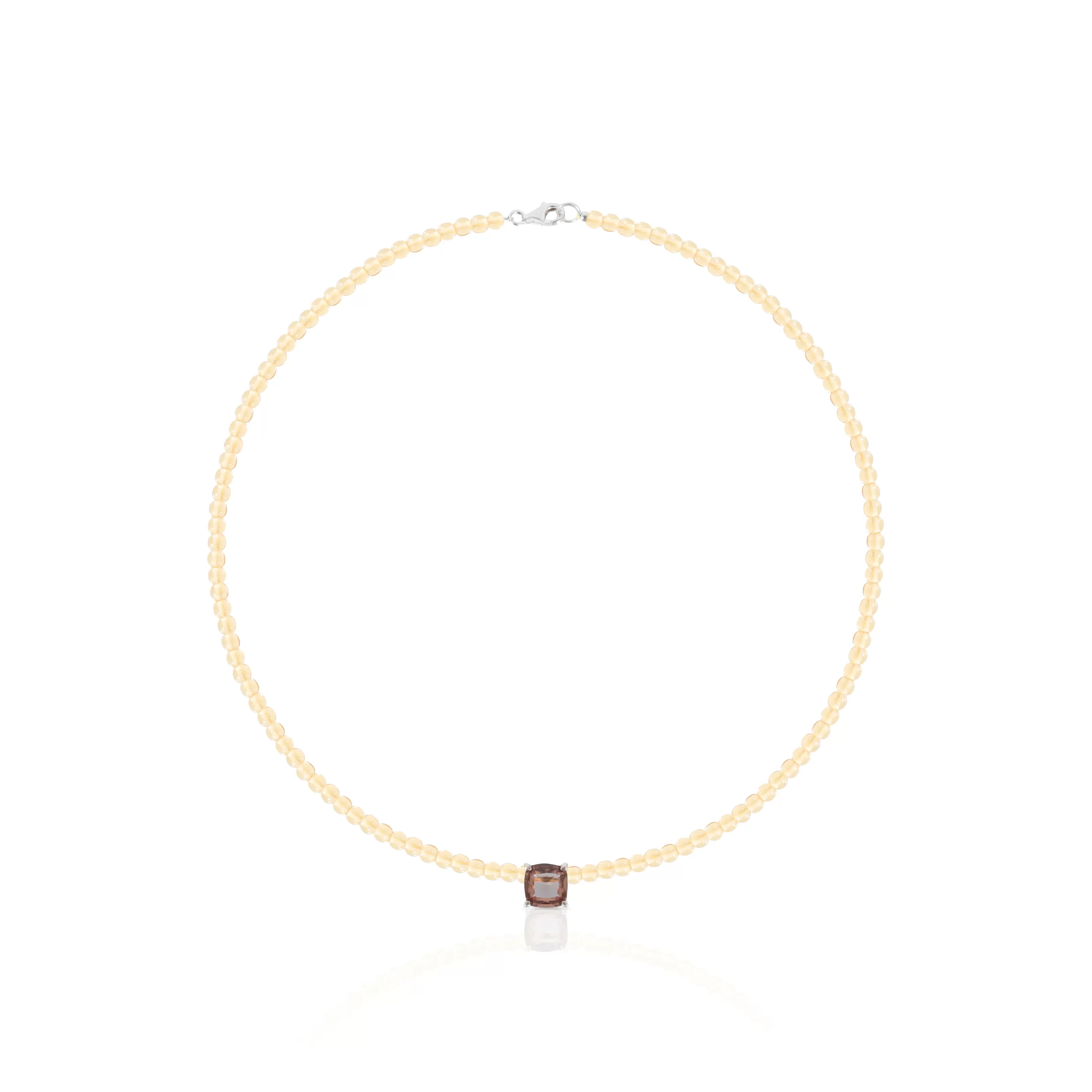 Collar de rutilo elaborado con piedras naturales, en el centro tiene un dije elaborado en plata ley 925 el cual engasta una zultanita.